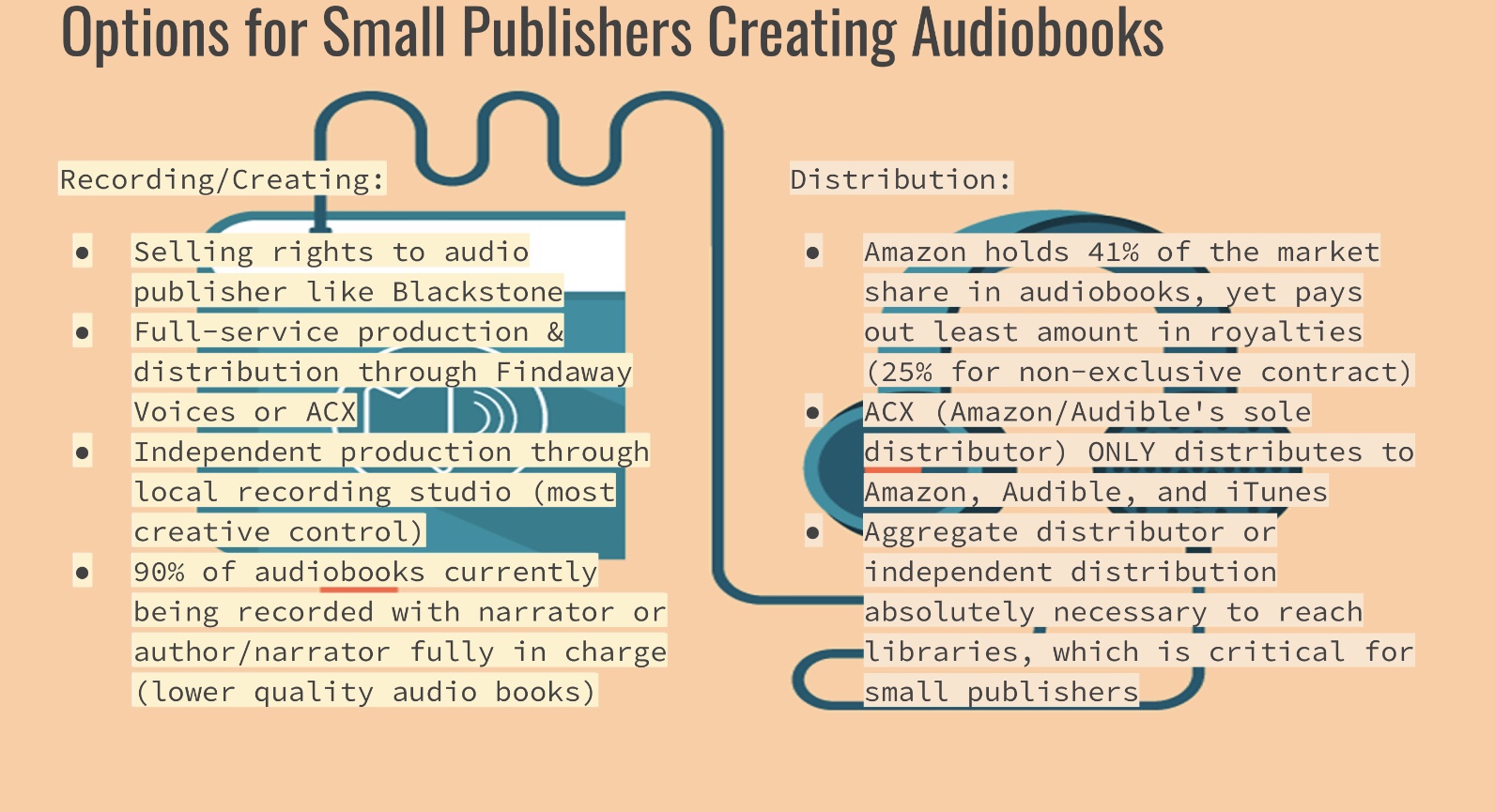 - In-depth knowledge of the industry and best practices for small publishers and publishers just starting out in audiobooks